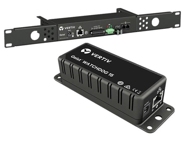 Der Vertiv Geist WatchDog passt auf, dass im laufenden Betrieb alles in Ordnung ist: Nicht zu warm, nicht zu feucht und er warnt, wenn im Schrank der Kondensationspunkt erreicht ist. Über externe Sensoren stellt er auch fest, ob ein Kabel schmort (Rauchmelder) oder ein Techniker die Tür offen gelassen hat.
