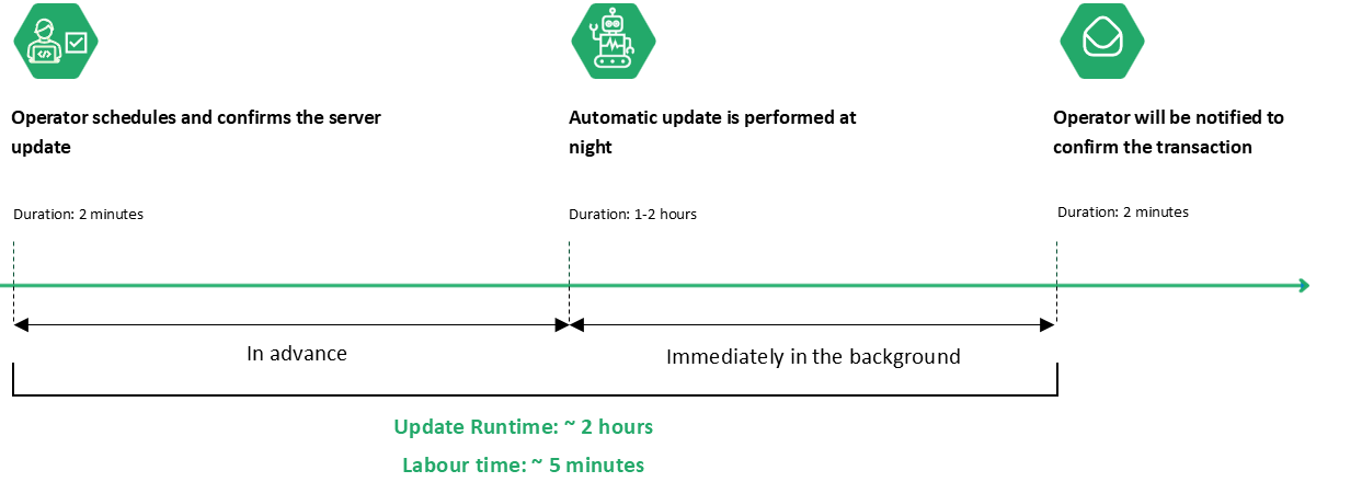Our solution offers the customer a wide range of benefits and added value. By reducing downtime, we minimize delays and improve user acceptance. Faster and more consistent updates increase the efficiency of workflows and improve customer satisfaction. The automation avoids manual errors, increases system reliability and improves the transparency of the update process by logging all system activities.