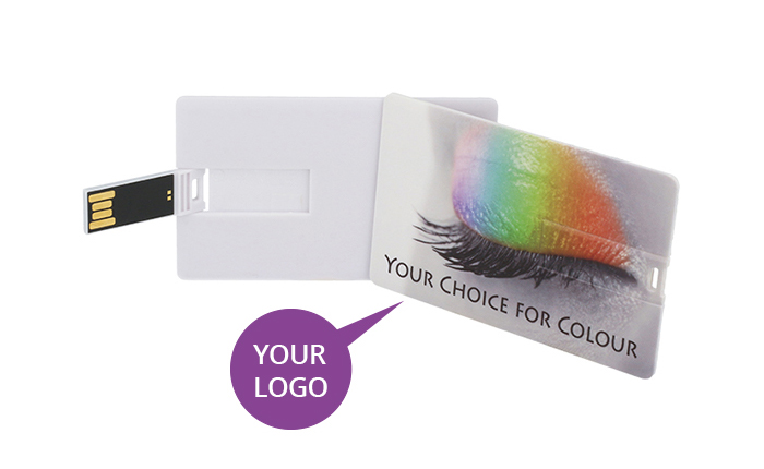 The USB stick in credit card format with fold-out memory port and flat housing allows you to carry the stick in your wallet. The large, printable surface invites you to effectively get your advertising message across to customers.