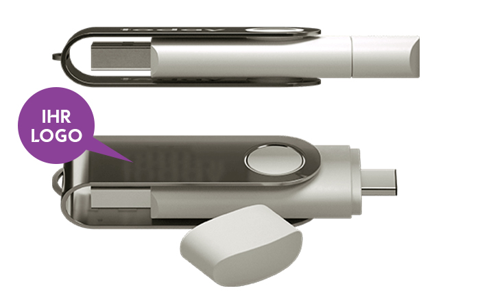 Unsere dualen USB-Stick-Modelle vereinen USB-A und USB-C in einem praktischen Design. So haben Sie stets die perfekte Verbindung zur Hand – egal ob für ältere Geräte oder die neueste Generation. Sparen Sie Zeit, vermeiden Sie Kompatibilitätsprobleme und setzen Sie auf Technik, die immer passt.