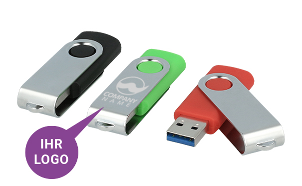 Der Klassiker für die preisbewusste Kundschaft. Beim Value Swing schützt der praktische Metallbügel die USB-Schnittstelle vor Beschädigungen und bietet gleichzeitig viel Platz für Ihre Werbebotschaft.