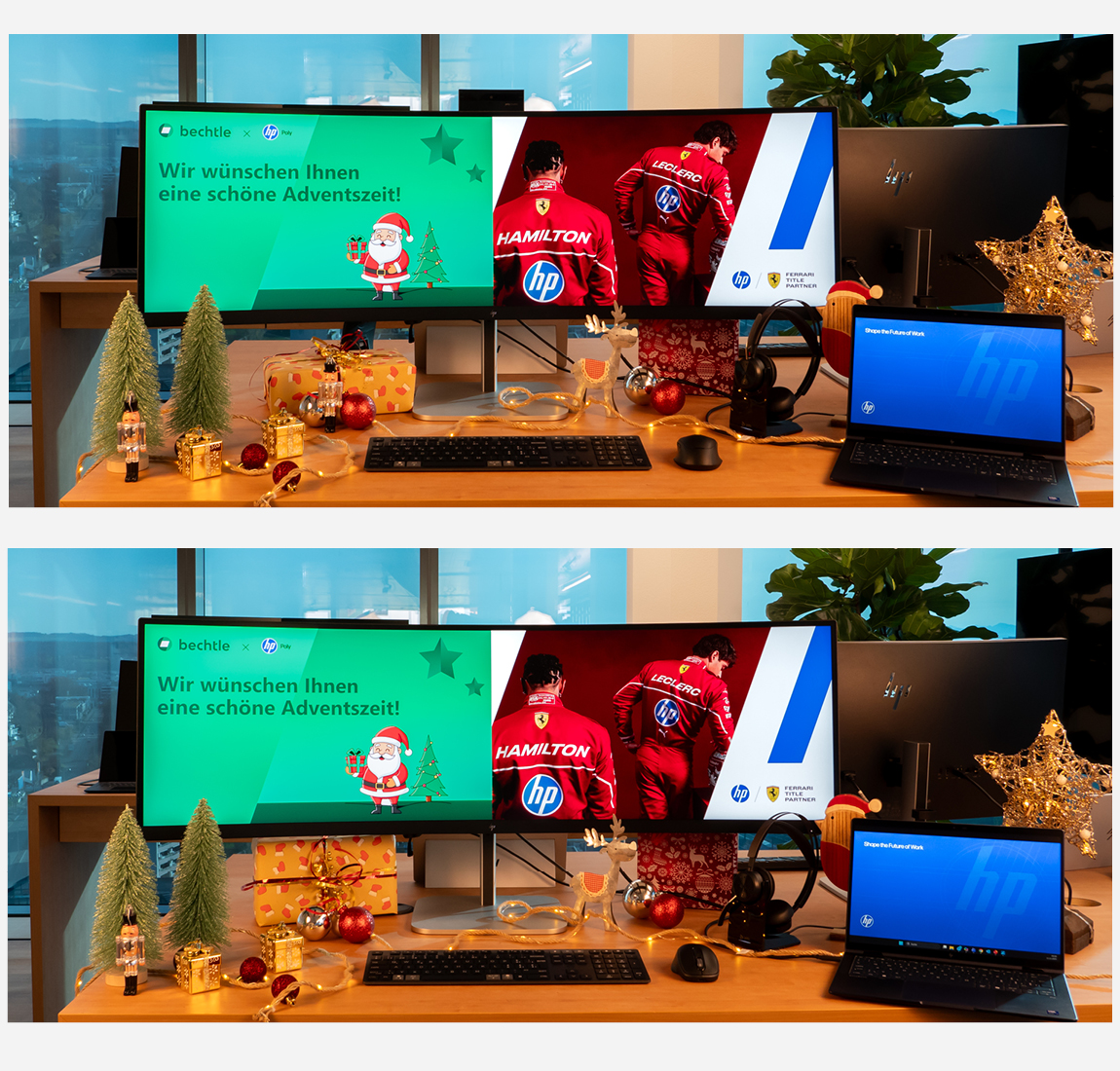 Wir haben zwei festlich dekorierte, modern ausgestattete HP Arbeitsplätze für Sie vorbereitet, doch aufgepasst: Zwischen den beiden Bildern haben sich kleine Unterschiede versteckt!