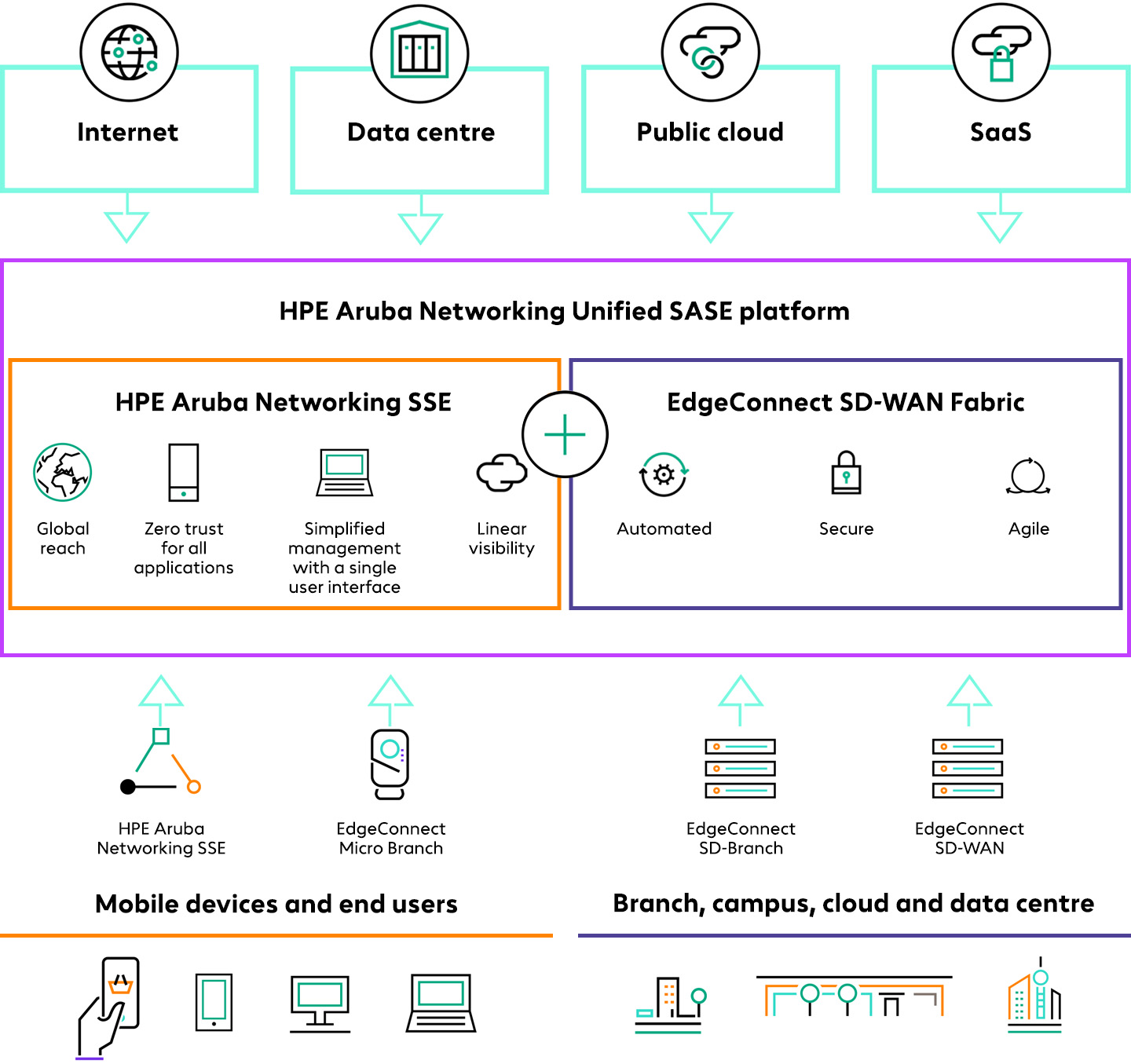 A unified SASE approach optimises IT workflows and simplifies secure connectivity for end users that are automatically directed to authorised cloud, edge, on-premise or internet resources. |