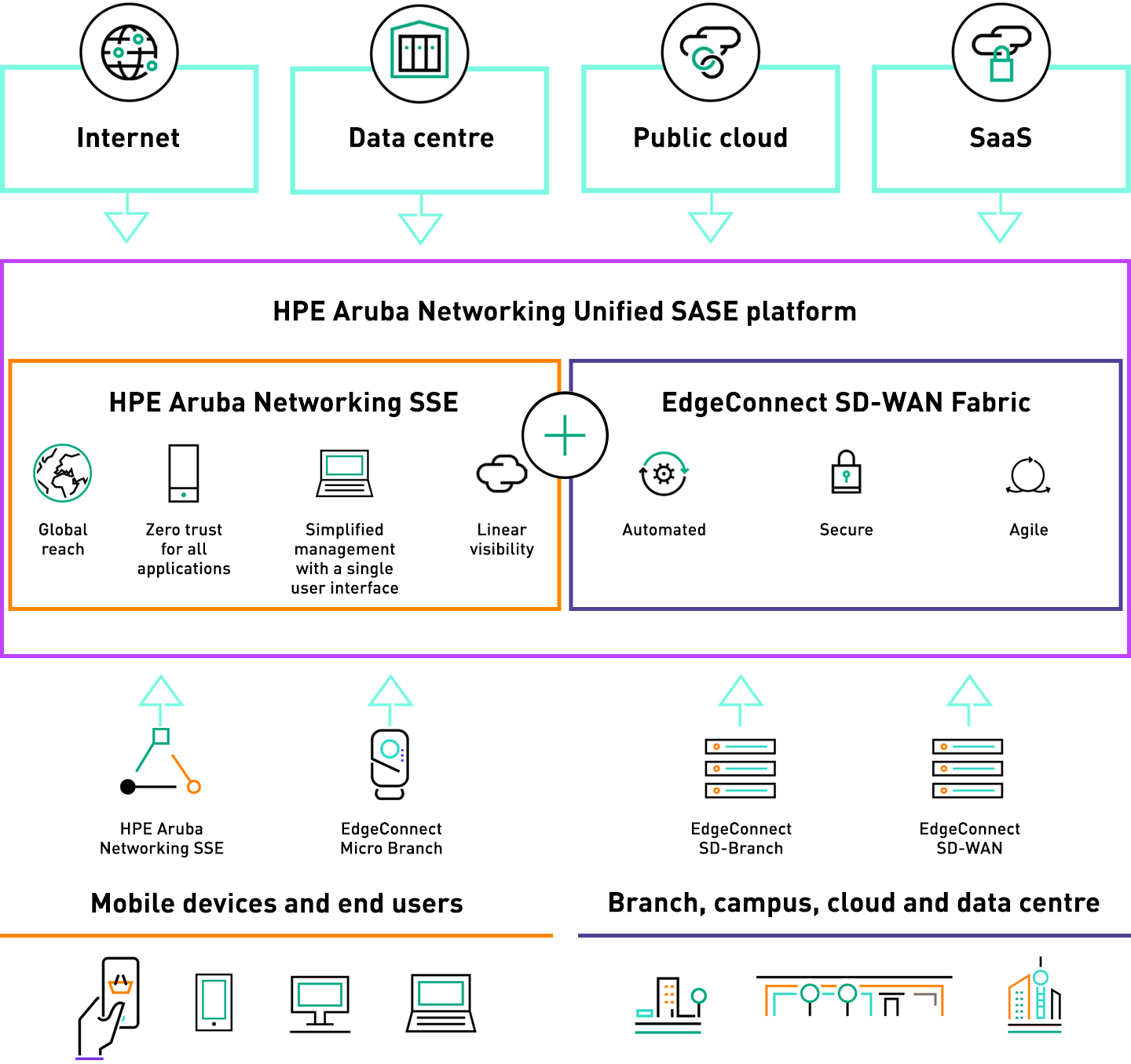 Enable simple, secure and location-independent access to applications and data in your company while enhancing the user experience with Unified SASE by HPE Aruba Networking.