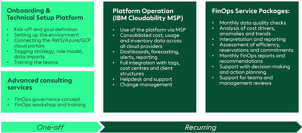 With 360° finops, Bechtle offers a fully managed end-to-end service for cloud financial management. We combine the leading FinOps platform IBM Cloudability with proven Bechtle consulting and operational expertise – enabling you to measurably reduce your cloud spending, manage budgets securely, and embed FinOps sustainably in your organization.