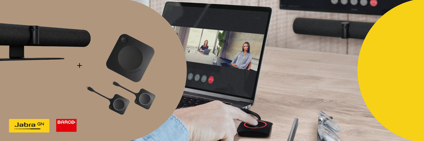 Jabra PanaCast 50 video conferencing solutions and Barco ClickShare wireless presentation systems.
