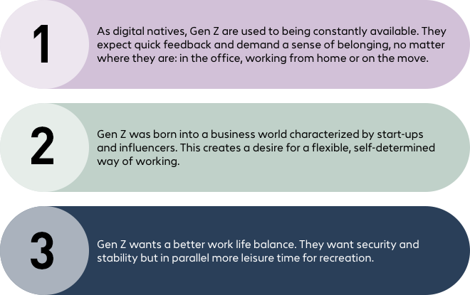 Engaging different generations is a success factor for businesses worldwide. But it also presents companies with new challenges. By 2025, Millennials and Gen Z will make up 75 %* of the workforce. To retain Gen Z in the long term and unlock their full potential, managers need to fully understand them: their behaviours, mindset and values.
