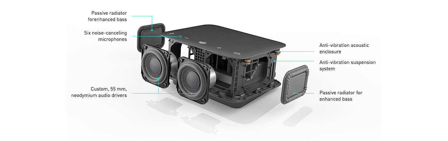 The integrated speakerphone consists of six beamforming microphones that record your voice in pristine quality while advanced algorithms block out unwanted background noises.