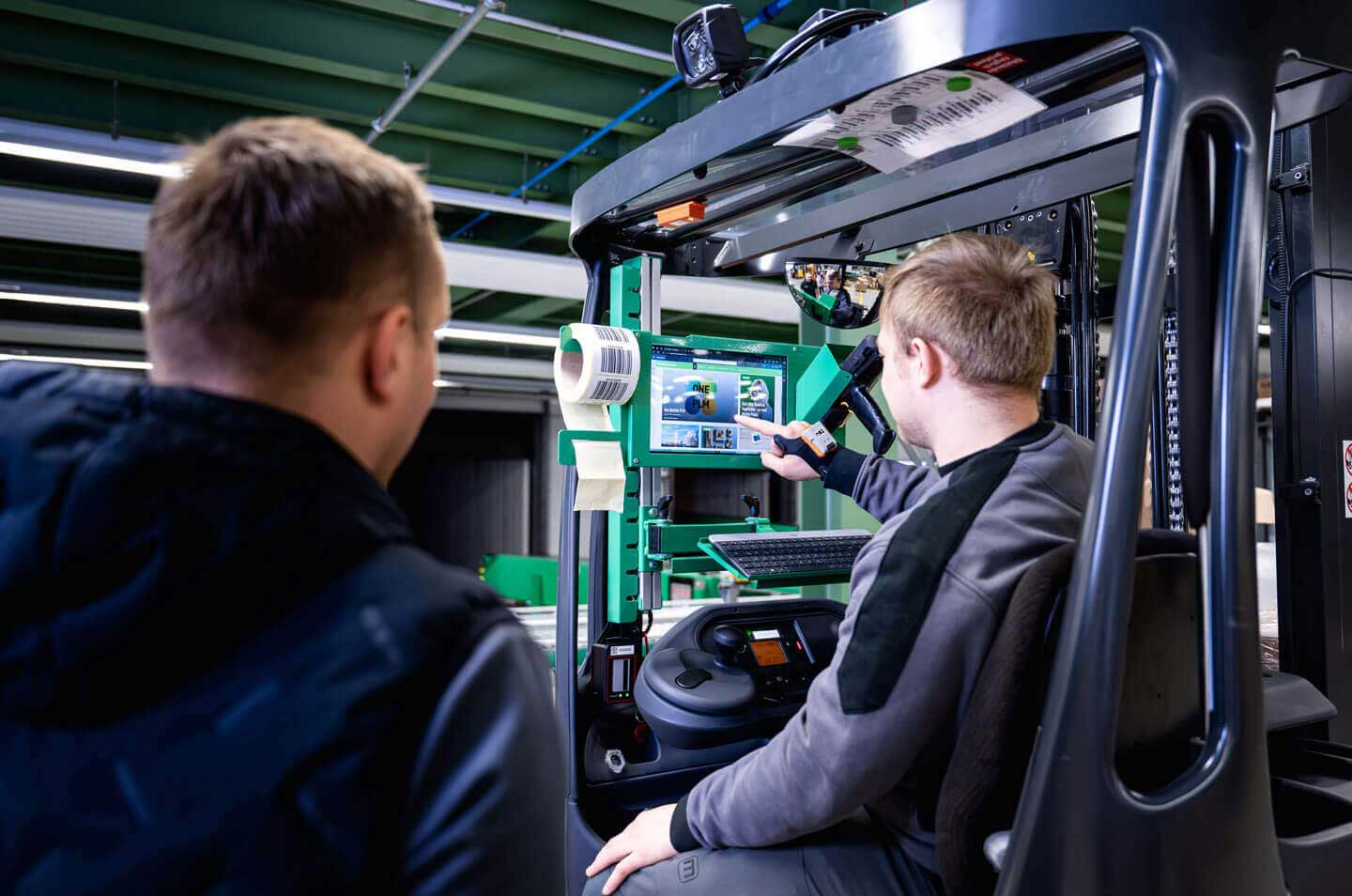 Each one of us drivers has a new device mounted on the forklifts. They are much more powerful than the old industrial PCs and more user-friendly, too. They also connect us directly with the ERP system allowing real-time communication.