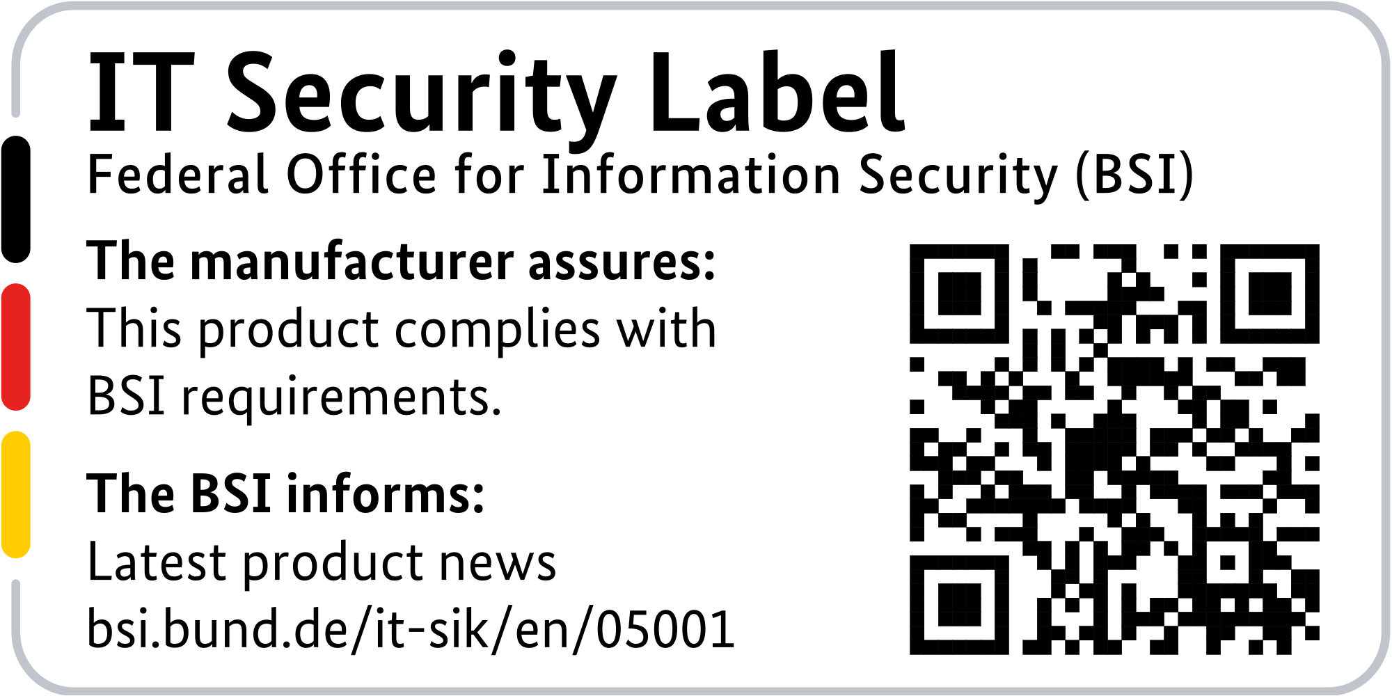- BSI IT security label: Available only on German devices – Confirms IT security standards and builds trust.