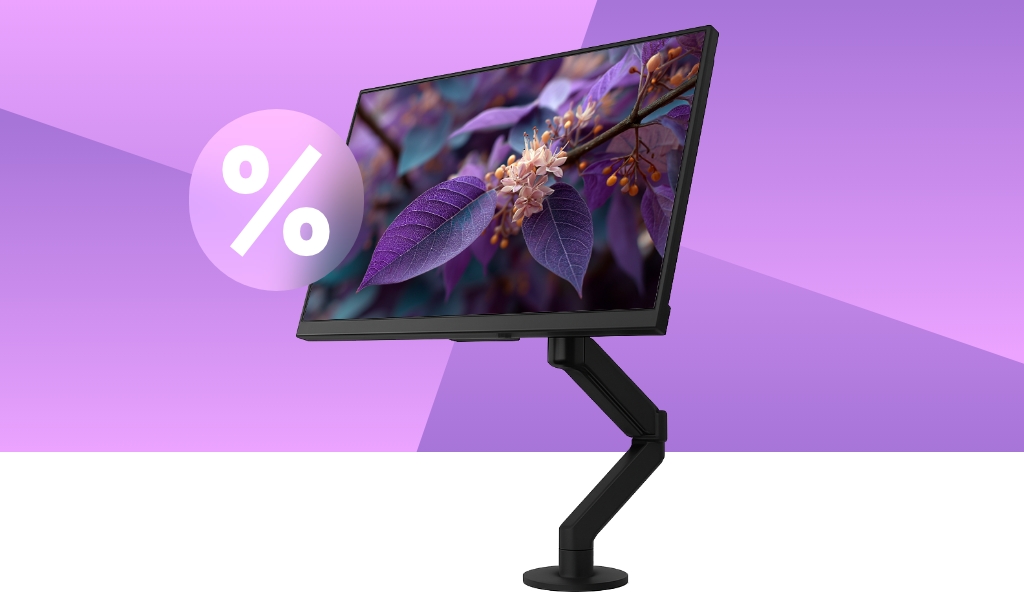 Discover our extensive range of monitors and mounts and transform your workplace into an ergonomic and efficient working environment. Increase the productivity and well-being of your employees with our high-quality products. Take advantage of our exclusive discount promotion now: find the ideal monitor and the perfect mount for your needs. Take advantage and save twice!