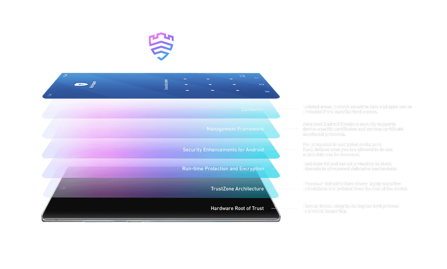 Dado que solo se necesita una vulnerabilidad para tomar el control de su dispositivo, Samsung Knox lo protege en todas las capas y en todo momento. Para que pueda centrarse siempre en sus negocios.
