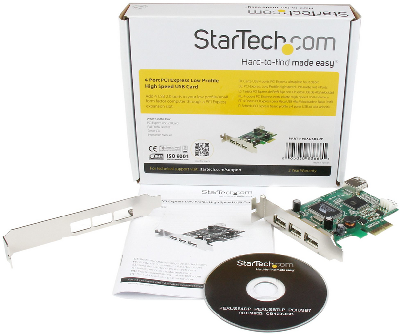 Add 4 USB 2.0 ports to your low profile/small form factor computer through a PCI Express expansion slot.