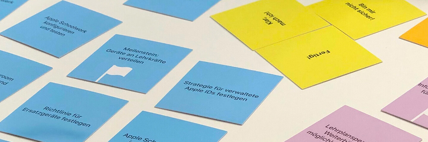 Planning Essentials ist ein halbtägiges Workshop-Format mit dem Ziel, zusammen mit Führungsteams von Schulen einen maßgeschneiderten Projektplan für die erfolgreiche Implementierung von Apple Technologie zu erarbeiten.