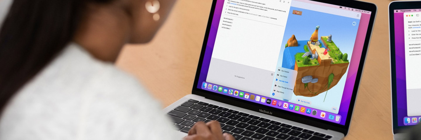 „Jede:r kann programmieren“ ist eine Reihe kostenloser Ressourcen, die auf die Swift Playgrounds App ausgerichtet sind. Schüler:innen werden damit zum Programmieren und Bewältigen realer Herausforderungen motiviert. Die Ressourcen umfassen Handbücher für Lehrkräfte und Schüler:innen mit flexiblen, motivierenden Lektionen – für eine Stunde oder ein ganzes Halbjahr. Für außerschulische Programme und Sommerkurse sind kostenlose Swift Coding Club Materialien verfügbar. App-Präsentationen geben aufstrebenden Programmierer:innen eine Gelegenheit, ihren Einfallsreichtum zusammen mit der Gemeinschaft zu feiern, unabhängig davon, ob sie innerhalb oder außerhalb des Kursraums lernen.