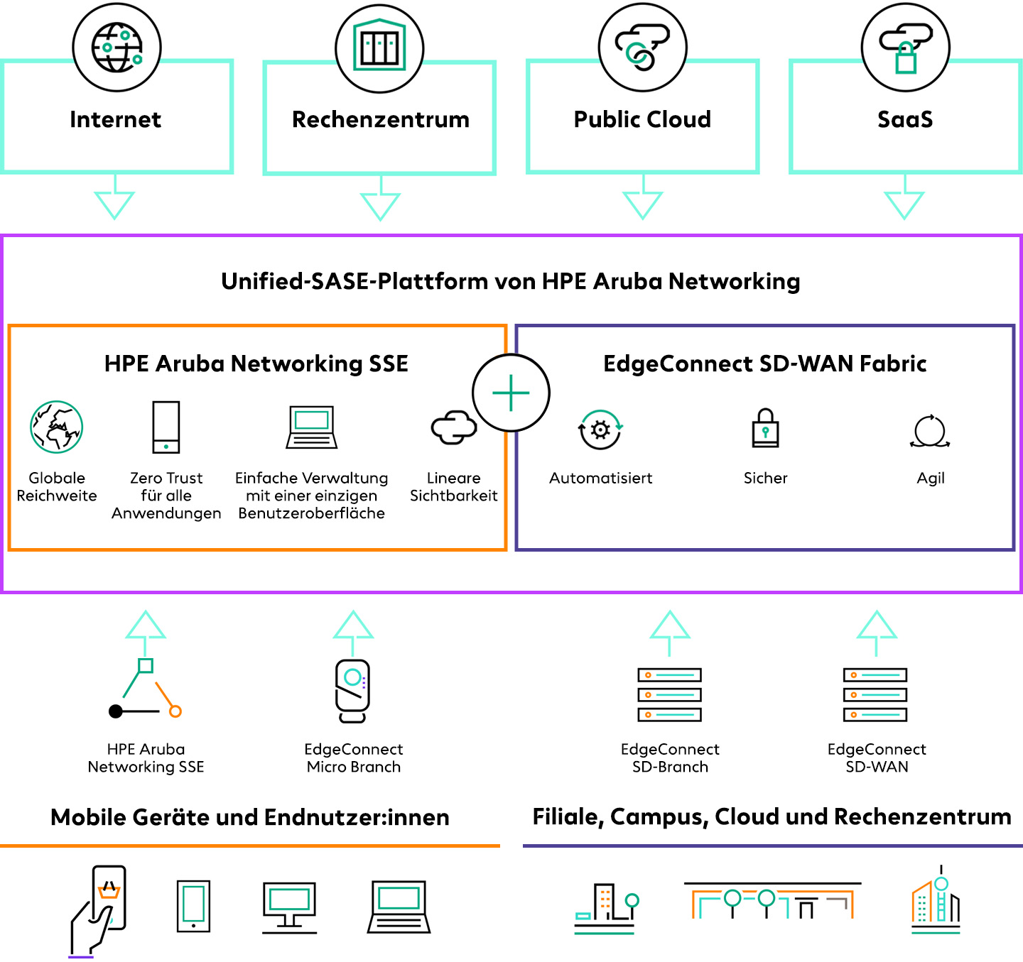 Ermöglichen Sie in Ihrem Unternehmen einen einfachen, sicheren und ortsunabhängigen Zugriff auf Anwendungen und Daten, während gleichzeitig die Benutzerfreundlichkeit durch Unified SASE von HPE Aruba Networking verbessert wird.