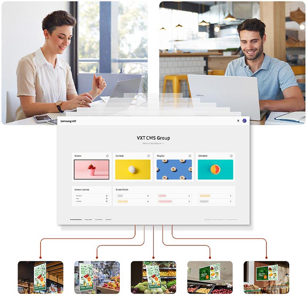 Samsung VXT ist eine cloudbasierte Lösung, die Funktionen für die Verwaltung von Content und das Remote-Device-Management vereint. So können Sie Geräteeinstellungen verwalten, technische Probleme beheben sowie Content mühelos erstellen und bereitstellen – ganz ohne Vorkenntnisse.