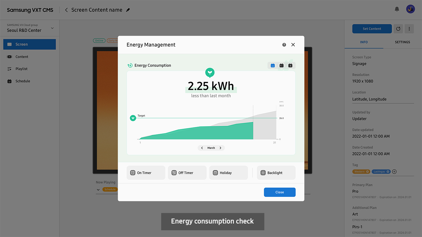 Samsung VXT CMS macht Fernverwaltung und Sicherheit intuitiv. Sperroptionen sind für Elemente wie USB- und Bluetooth-Geräte, WLAN, andere Netzwerke und Fernbedienungen verfügbar. Display-Einstellungen werden in nahezu Echtzeit geändert und mehrere Geräte können gleichzeitig verwaltet werden.
