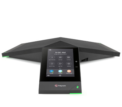 De Polycom Trio 8500 is geschikt voor de kleine tot middelgrote vergaderruimte en beschikt over 3 ingebouwde microfoons met een bereik van 4,2 meter en een 5” kleuren touch screen.