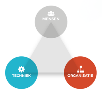 Figuur 1: Informatieveiligheid is een samenspel van Mensen, Techniek en Organisatie.