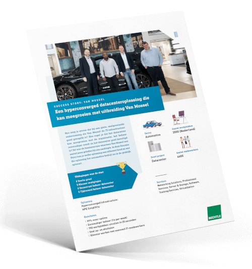 Romano: “De grootste uitdaging waren de vele decentrale locaties. Van Mossel groeide – en groeit nog steeds – heel snel. In 2016 hadden we acht kleine datacentertjes in ons eigen hoofdpand draaien. De uitbreidingen met nieuwe dealers ging zó snel dat we iets moesten doen. We moesten zaken centraal regelen, het beheer moest worden gecentraliseerd en beter beveiligd. Mijn collega heeft toen Peter van Bechtle om advies gevraagd. Mogelijkheden waren er genoeg, maar welke oplossing paste het beste bij ons?”