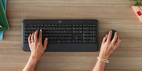 Das Signature MK650 Set für Unternehmen ist ein perfekter Begleiter für den ganzen Arbeitstag und bietet hohen Komfort. Die Tastatur verfügt über eine integrierte Handballenauflage und Tasten, die sich vertraut anfühlen, während die gummierten seitlichen Griffflächen der Maus und der weiche Daumenbereich eine angenehme Handhabung ermöglichen. Mit diesem Set wird die Arbeit weniger anstrengend und fühlt sich fast wie Freizeit an.