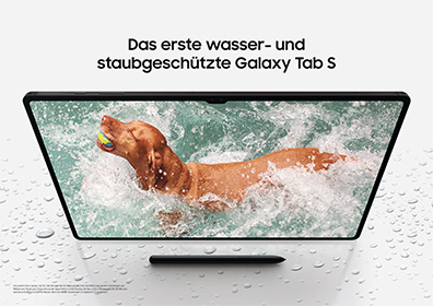 Nehmen Sie Ihr Galaxy Tab S9 mit an all die Orte, die Sie inspirieren, motivieren oder entspannen. Sie müssen sich keine Gedanken über die äußeren Bedingungen oder das Wetter machen. Dank seiner IP68-Zertifizierung ist das Gerät nicht nur staubdicht, sondern auch vor dem Eindringen von Wasser geschützt. Selbst ein kurzer Sturz ins kühle Nass verliert seinen Schrecken.