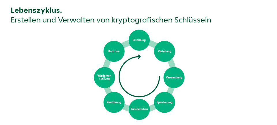 - Lifecycle Management für kryptografische Schlüssel (Erstellung, Rotation, Löschung).