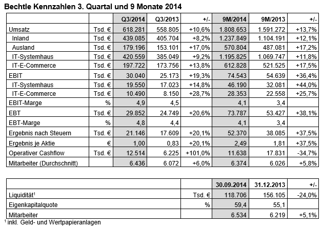 Den Bericht für das dritte Quartal 2014 finden Sie hier: Zu den Bechtle Finanzberichten 2014