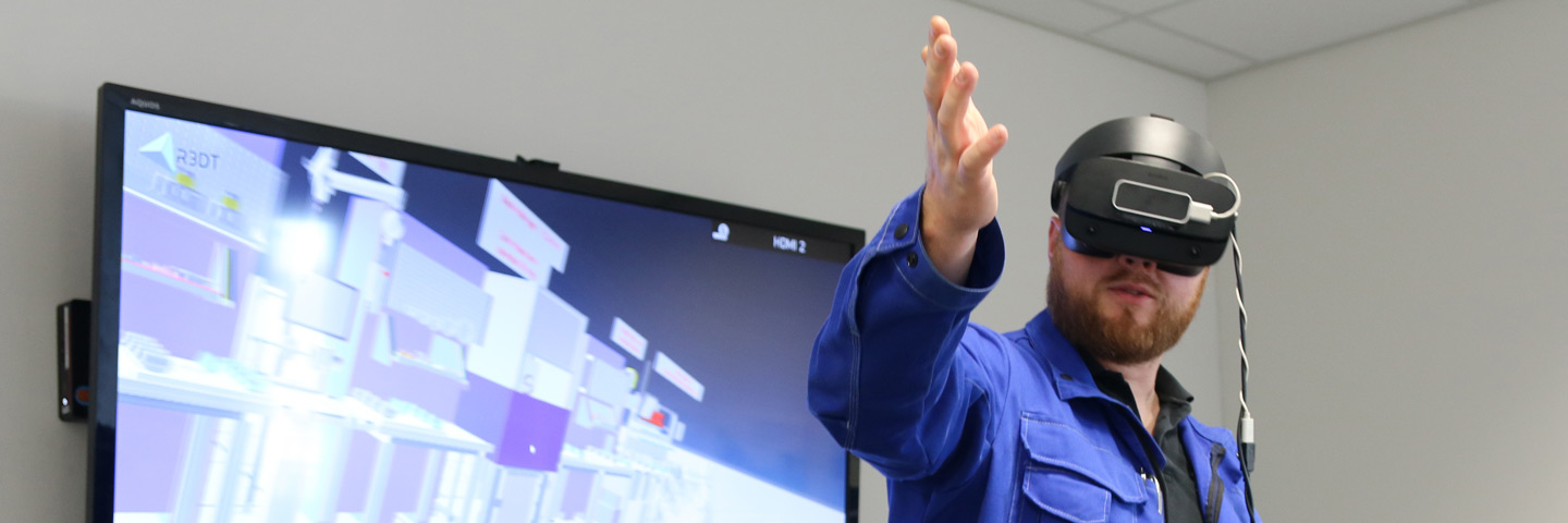 Ganze Anlagen lassen sich so bereits in der Konzeptionsphase visualisieren und mittels der VR-Brille eins zu eins in der virtuellen Umgebung erleben. Die Mitarbeiterinnen und Mitarbeiter testen den gesamten Arbeitsplatz, nehmen Werkzeuge auf, überprüfen das Verschrauben und führen jeden Arbeitsschritt direkt in der virtuellen Umgebung durch. Dazu braucht es nun bei STÖBER keine komplett aufgebaute Montagestraße als Prototyp mehr. Bereits in der frühen Planungsphase werden dank der Software von R3DT zahlreiche Verbesserungspotenziale erkannt. Den tatsächlichen Prototyp baut STÖBER erst sehr nah an der Serienreife.